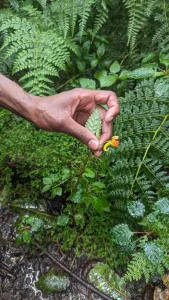 (Elevation: 9,400ft to 12,500ft, Distance: 5 km, Hiking Time: 4-6 hours, Habitat: Moorland)After breakfast, we left the glades of the rain forest and continued on an ascending path, crossing the little valley walking along a steep rocky ridge covered with heather, until the ridge ends then west into a river gorge.