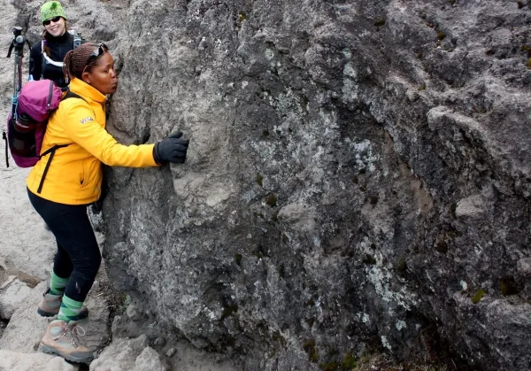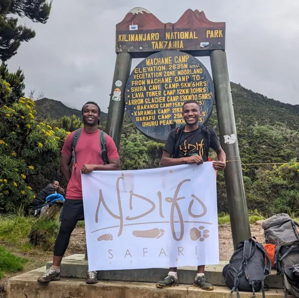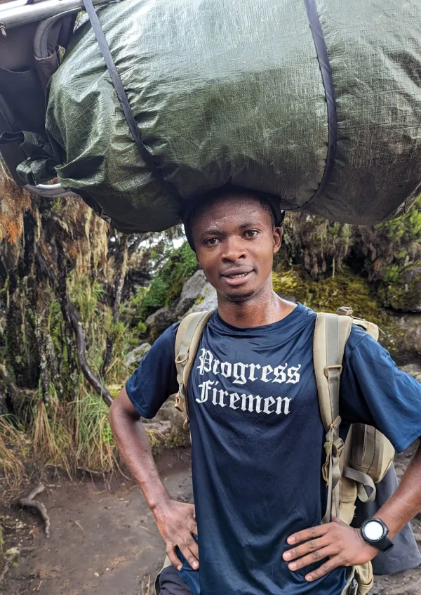 Steve Ngowi, Ndifo’s owner & lead guide, was born and raised on the southern slope of Kilimanjaro. Although he’d spent his life gazing at the mountain, he never dreamed of climbing it. “Climbing was for the foreign visitors to Tanzania,” Steve remembers, “it is not something that many local citizens can afford to do. Much gear and training is needed for this climb.” Steve did know young men his age who became porters for the tourist climbs – everyone knew what a hard life that was carrying up to 33lb (15kg) on their backs and heads up and down the 19,300ft (5,895m) slick rock mountain over and over with only the most basic gear. So like most other Tanzanians, just the thought of making the climb never crossed Steve’s mind.