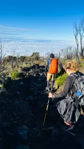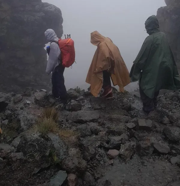 Be sure you have the right gear. (Full recommended list below.) Don’t skimp on this step. Test your gear before you come. The first night of your climb shouldn’t be the first time you check the batteries in your flashlight. Go camping with all your gear at least one night before so that you know what works before you are on the mountain. Be sure you like the smell of the inside of your sleeping bag – you’ll be taking shelter in it more than you can know. Wear your clothes and hiking boots around flat ground for a bit before you wear them on your way up. Be sure everything is very comfortable. Your clothing should be as waterproof as possible. Test everything out – we found out the hard way that there are different levels of waterproof. This goes for your bag covers as well.