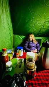 Bring cash tip money for your guides and porters. When you see these human beings carry all your stuff – clothes, tent, sleeping bag, food, water, toilet, and all your toiletries for a week – up the same implausibly impassible route you are struggling up, you will want to thank them the best way possible. So little goes so far, and they work so hard for your safety and happiness. You’ll have 6-7 porters and one guide per climber. Not only will they haul and prepare all your food for a week, they will assemble your tent each day before you arrive at camp and bring you tea in your tent each morning.